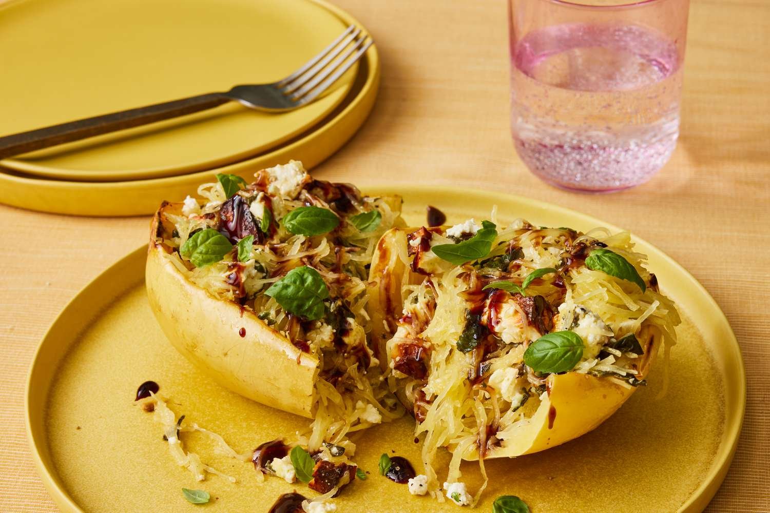 A comforting grilled spaghetti squash recipe with feta cheese and spinach. A block of feta cheese is baked inside the pumpkin halves along with fresh baby spinach and plenty of garlic for a creamy, flavorful mixture. The balsamic glaze adds a touch of sweetness that contrasts beautifully with the salty feta. Choose cow’s milk feta for a sharper taste, or sheep’s milk feta for a more delicate flavor.