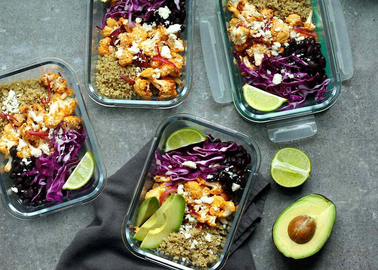 These meal prep vegan burrito bowls are healthier and more flavorful than takeout. Make this at the beginning of the week to take home on busy days. To reduce cooking time, we use frozen cauliflower rice, a low-carb alternative to white or brown rice.