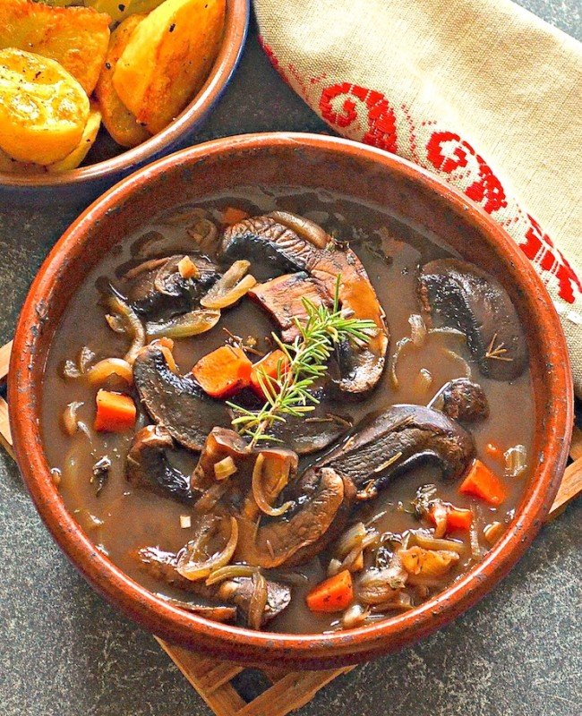 Rich and hearty Portobello Pot Roast. Meaty portobello mushrooms, red wine, herbs and vegetables combine to make a delicious plant-based feast.