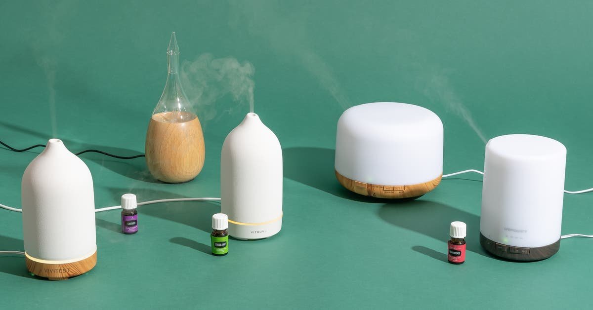 The Urpower 2nd Generation 300ml Aroma Essential Oil Diffuser is a simple white plastic cylinder in a dense field of interesting shapes and faux wood. This is one of the least expensive diffusers we’ve reviewed, but it still performs better than models that cost 4-5 times more.