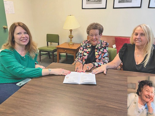 BETTY WRENN DAY / GAZETTE-JOURNAL Beth Bunting, from left, Ruth J. Gwynne and Anita Forrest talk about the late Elsie Dame (insert). Their church memorialized her with a copy of her cookbook, a collection of her favorite recipes.