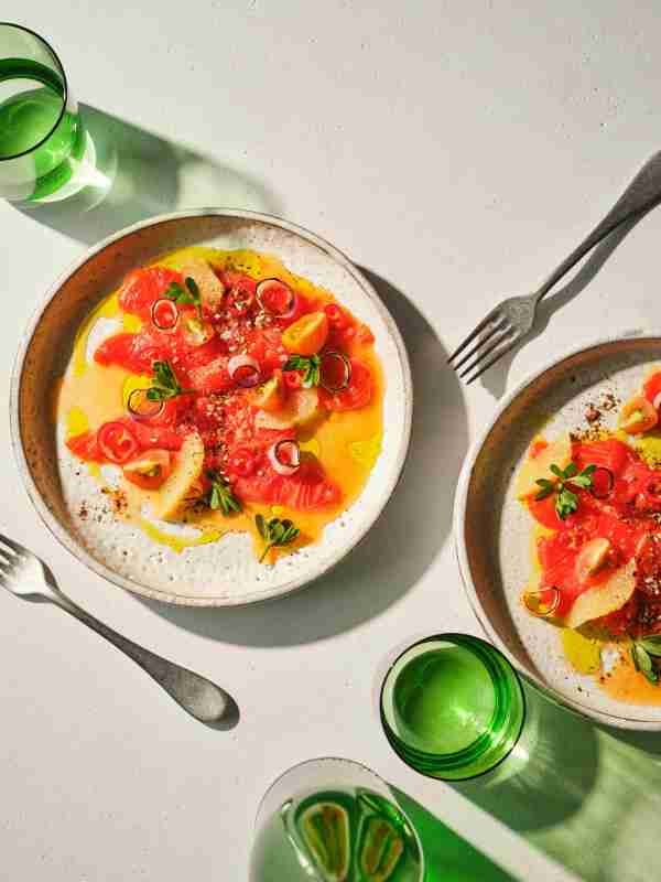 “With crudo, we want to bring out the full flavor of the seafood,” he says. “If it’s fresh fish, it’s almost like eating Japanese sashimi, seasoned with fresh citrus and olive oil, rather than sliced straight to the plate. It adds a bit of acidity. I love using acidity in cooking because I feel like it doesn’t overpower something with fatty fish like salmon, and when combined with oily fish, the right amount of acidity really enhances the flavor of the fish. I think it brings out the fat and flavor of the fish.”