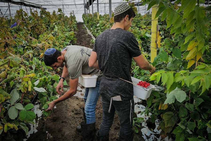Israeli volunteers help support local raspberry grower Moshav Avnei Eitan in the Golan Heights.