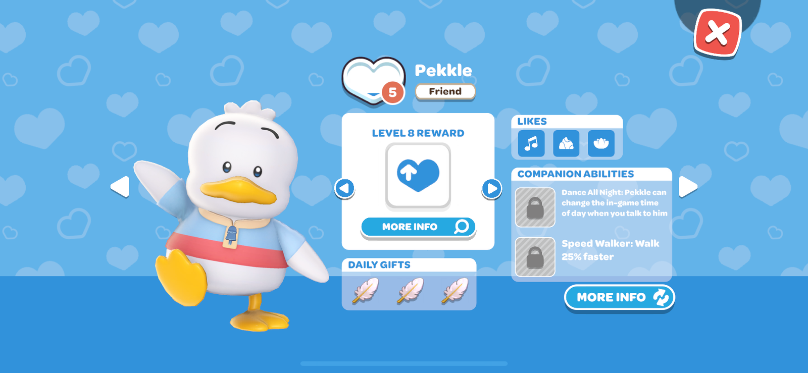 - Reach friendship level 8 Pekkle