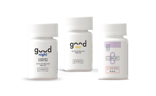 GI Comfort tablets are a highly unique formula that combines 30mg CBD for inflammation, 1.7mg THC for pain, and 75mg CBG to help address symptoms associated with gastrointestinal disorders like IBS/IBD and Crohn’s Disease. Good Day tablets provide a powerful team of 10mg CBD, 5mg THC, and 5mg THCV to boost motivation and focus. Good Night tablets use patented pulsed release technology to instantly release CBN and THC to help you fall asleep, and release more about three hours later to help you stay asleep and wake up refreshed.