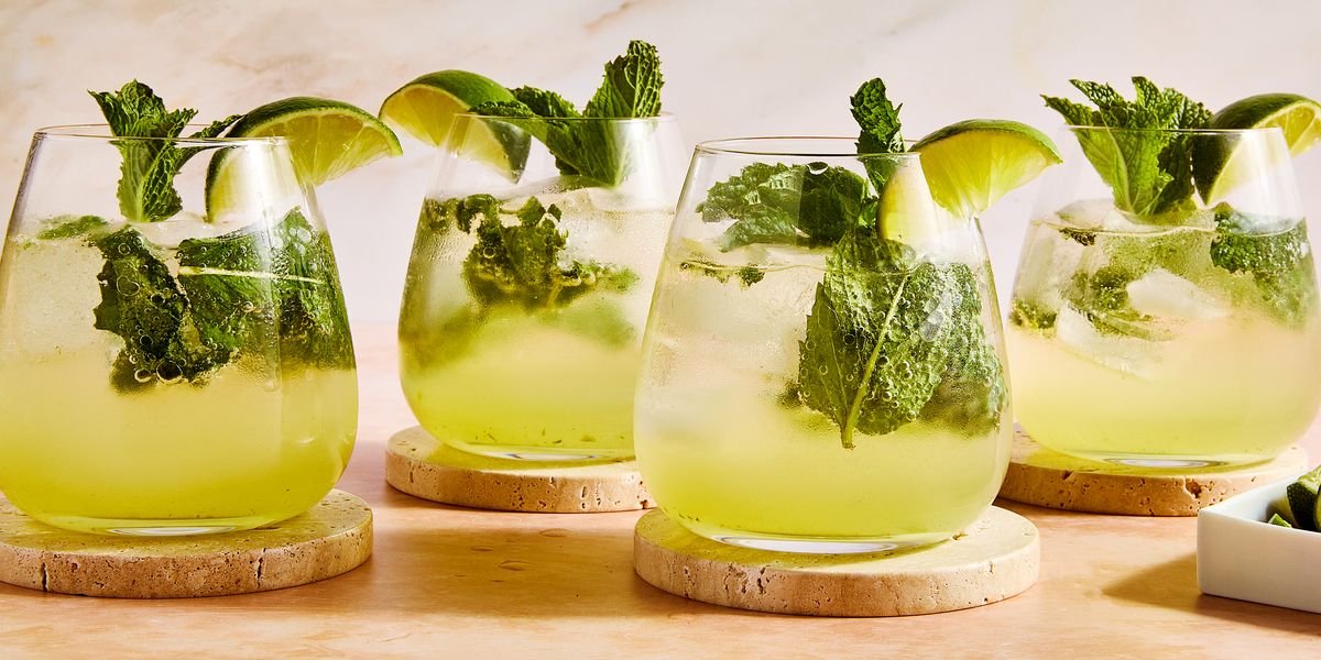 • Mint & Lime: The mint has a herbal cooling quality and the lime has a floral tartness that balances the sweetness of the St. Germain.
