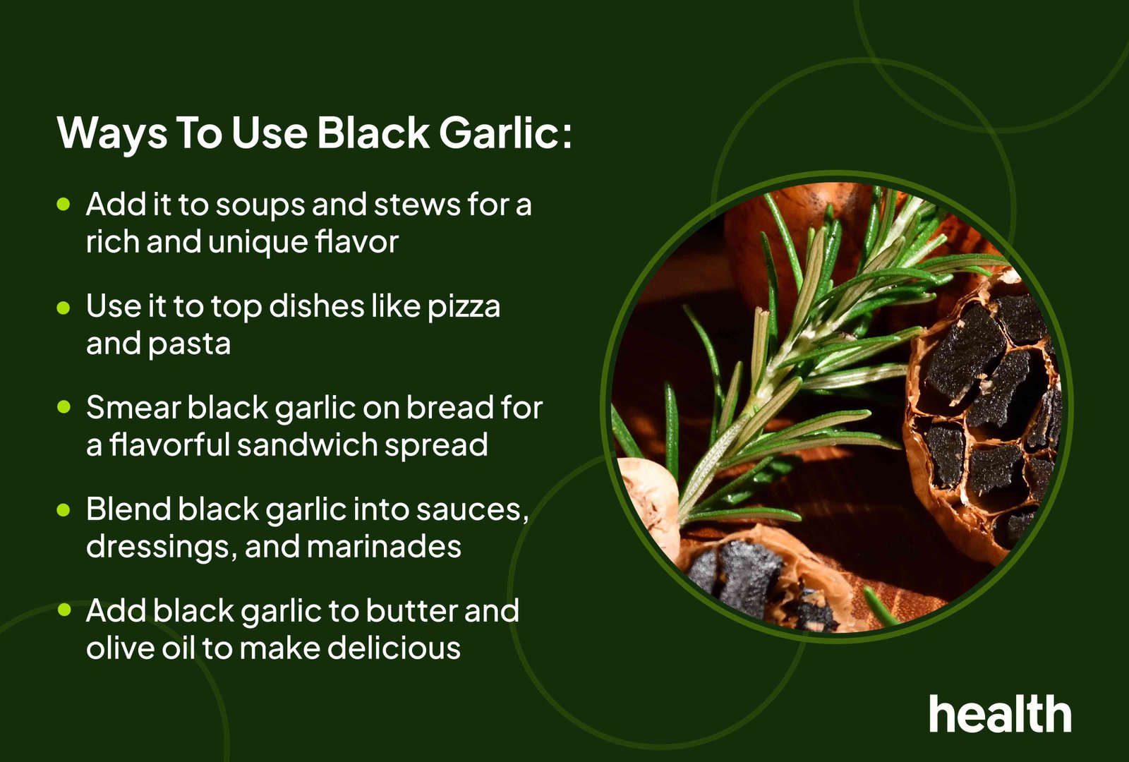Research has shown that consuming black garlic has a number of health benefits, including improving risk factors for heart disease, such as cholesterol and blood pressure.