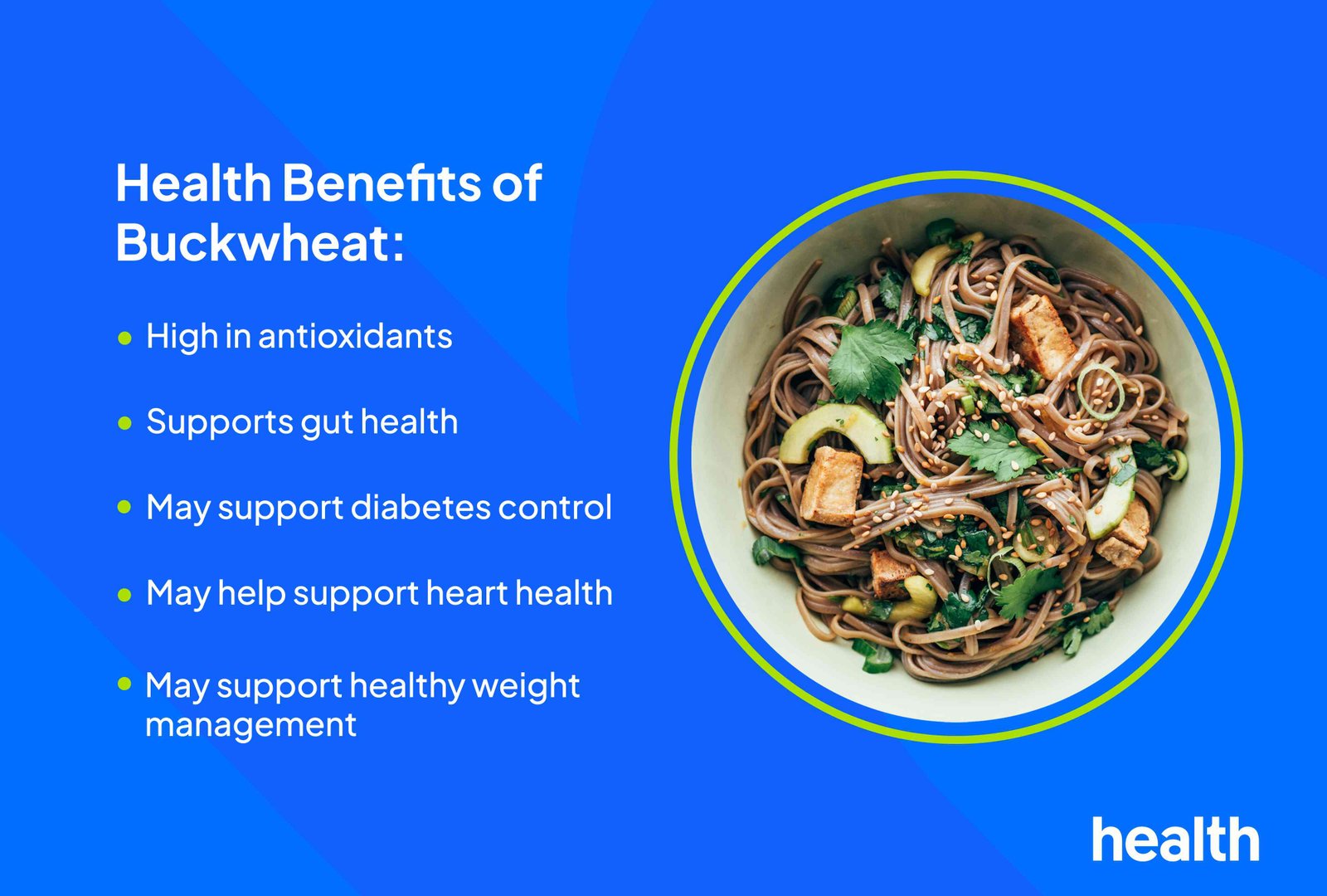 Research shows that consuming buckwheat may help protect heart health. An analysis of 13 previously published studies found that buckwheat may help reduce total cholesterol and triglycerides (blood fats). Part of its cardioprotective effects may be due to a combination of its fiber, resistant starch, antioxidants, plant proteins, and ability to regulate blood sugar levels. The latter is noteworthy because having type 2 diabetes has been shown to increase the risk of heart disease by two times.