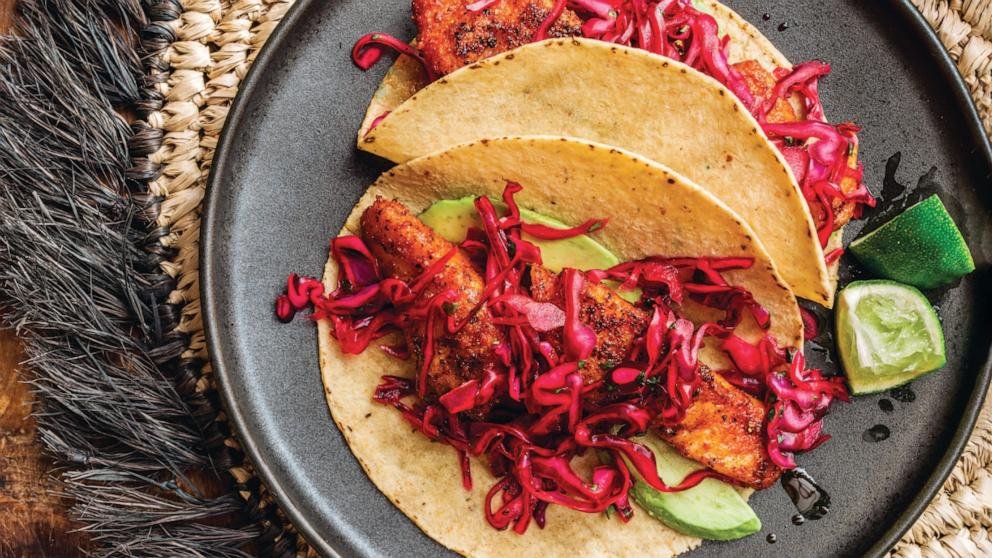 5. Bring everything to the table and make tacos using the fish, cabbage mix, and avocado.
