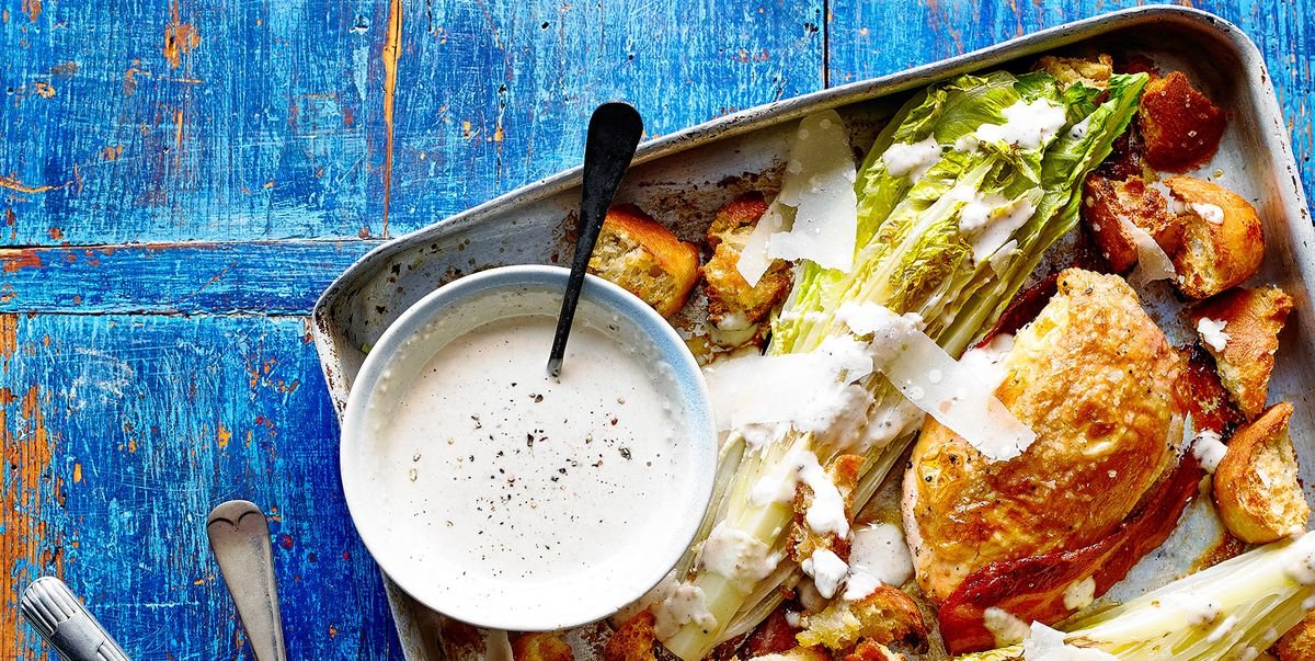 A weekday meal with a twist on the traditional chicken Caesar salad. People will think you made an extra effort when you serve this delicious and easy traybake.