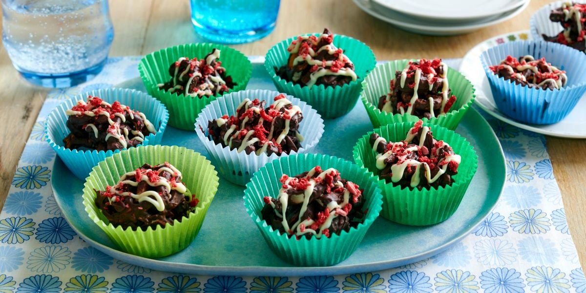 3. step 3Using a greased spoon or cookie scoop, scoop heaping tablespoons of the mixture onto a baking sheet (or scoop into cupcake liners).