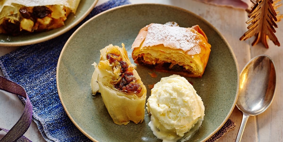 Home » Christmas cake strudel with brandy cream ice cream that does not require stirring