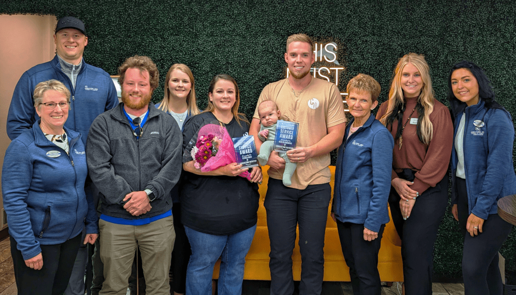 Jamestown, N.D. (Chamber) – Members of the Jamestown Area Chamber of Commerce Ambassadors Committee and Jamestown Young Professionals presented the May Customer Service Award to Nick Blazkowski and Jessica Rush. did.