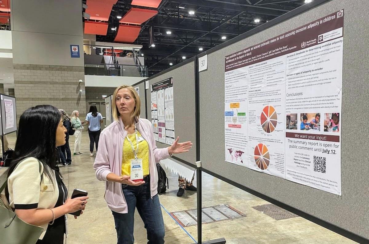 In addition to the NASEM-funded research, Evidence Center team members presented posters on systematic reviews examining the association between free school meals and school and student outcomes. Poster presentations included a summary of an expert consultation on the accuracy of tests to assess excess fat in children and adolescents to diagnose obesity, to support the World Health Organization’s development of guidelines for the clinical management of obese children.