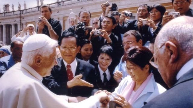 Tai Chi Grand Master Dr. Hong Tao Tse and his wife Mrs. Yu Meijun greet Pope Benedict XVI (1927-2022) in St. Peter's Square in Rome in 2005.Tai Chi Grand Master Dr. Hong Tao Tse and his wife Mrs. Yu Meijun greet Pope Benedict XVI (1927-2022) in St. Peter's Square in Rome in 2005.