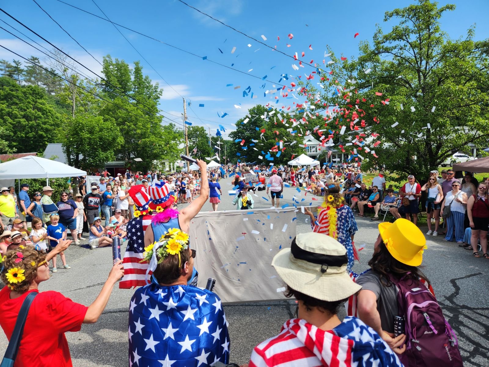 Hikers rode a “float” in the Fourth of July Independence Day Parade in Wardsboro, Vermont. Coordination and giveaways were kindly provided by the Wicked Waystation hostel.