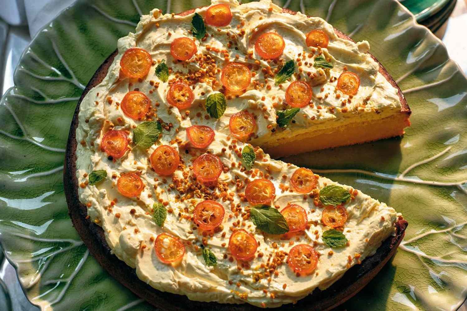 Kat Turner created this citrus dessert by adding yuzu juice to the cake batter and lemon zest to the frosting, then topping it with candied kumquats.