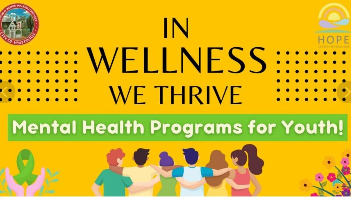 - Community Wellness Workshops: A series of experiential workshops will provide community members with practical tools and strategies to help them recognize mental health symptoms and connect them to treatment support. Workshops are open to the public. Sessions will be posted at hyattsville.org/calendar.