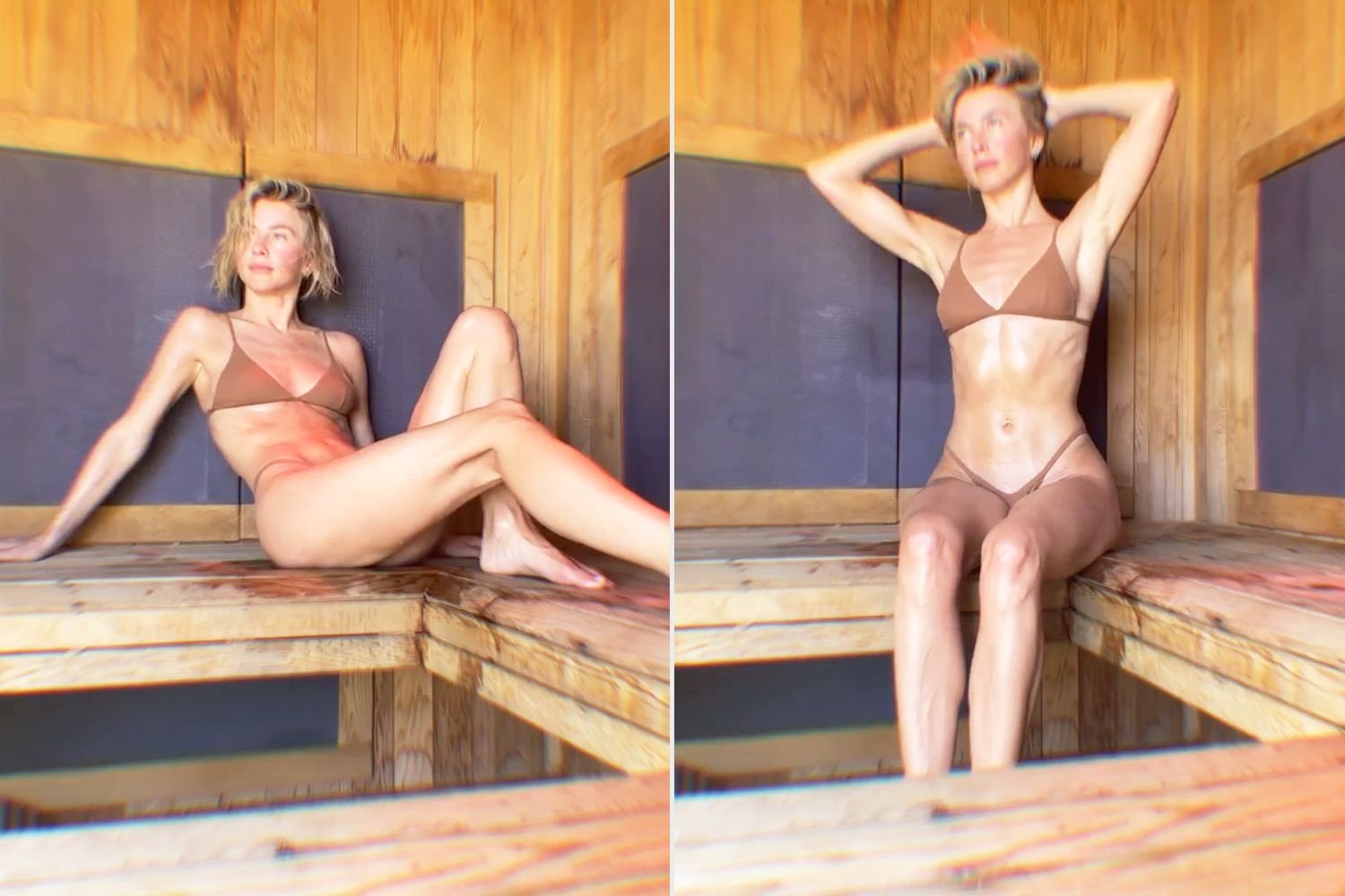 In the video, the 35-year-old is seen in a bikini doing various stretches while in a sauna. She plays Tommy Richman’s hit song “Million Dollar Baby” over the video.