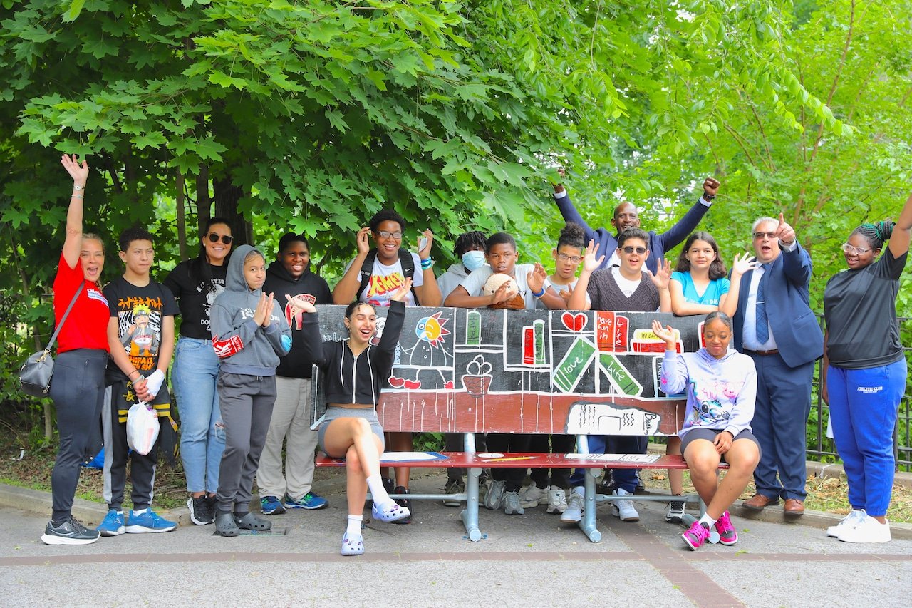 STATEN ISLAND, NY – As you walk into Clove Lakes from a small park called Norbert Leesberg Perennial Gardens near Victory Boulevard off Clove Road, you’ll see Staten Island students from South Richmond High School making a statement about mental health awareness in a powerful mural painted on a bench. The mural was installed in Clove Lakes Park as part of CEI’s citywide exhibit, “Benchmarks,” which is part of the “Youth Setting the Standard for Social Change” program created by the Center for Education Innovation (CEI) in collaboration with the New York City Parks Department.