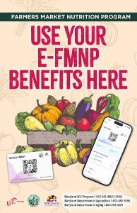 If you have any questions, please contact Sarah Servin, Farmers Market Nutrition Program Coordinator, at sara.servin@maryland.gov or Heather Hulsey, Maryland Money Market & Food Access Program Manager, at hhulsey@smadc.com.