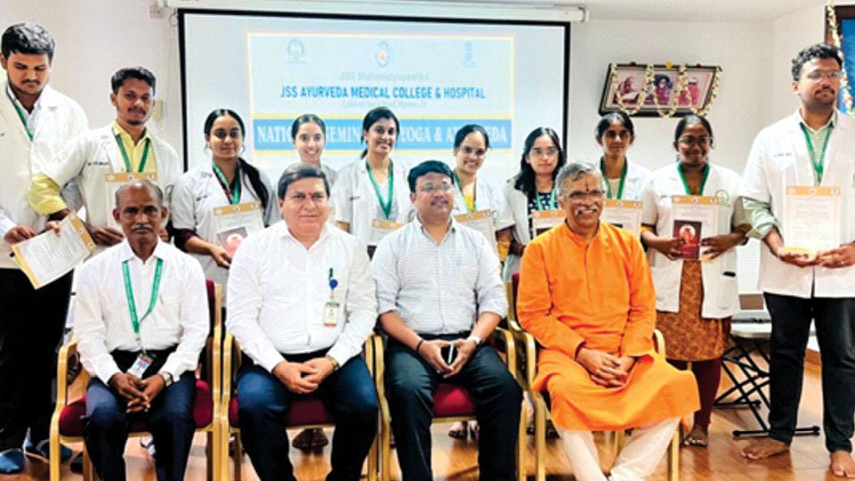 Mysore: Swasthavrita School of Postgraduate Studies, JSS Ayurvedic Medical College In collaboration with the Ministry of AYUSH, Government of India, Morarji Desai National Institute of Yoga, New Delhi and SKRSPM Sri Veda Vyasa Yoga Pratishtana, Mysore, a day-long National Seminar on Yoga and Ayurveda was recently organised on the eve of International Day of Yoga at the University campus in Mysore.