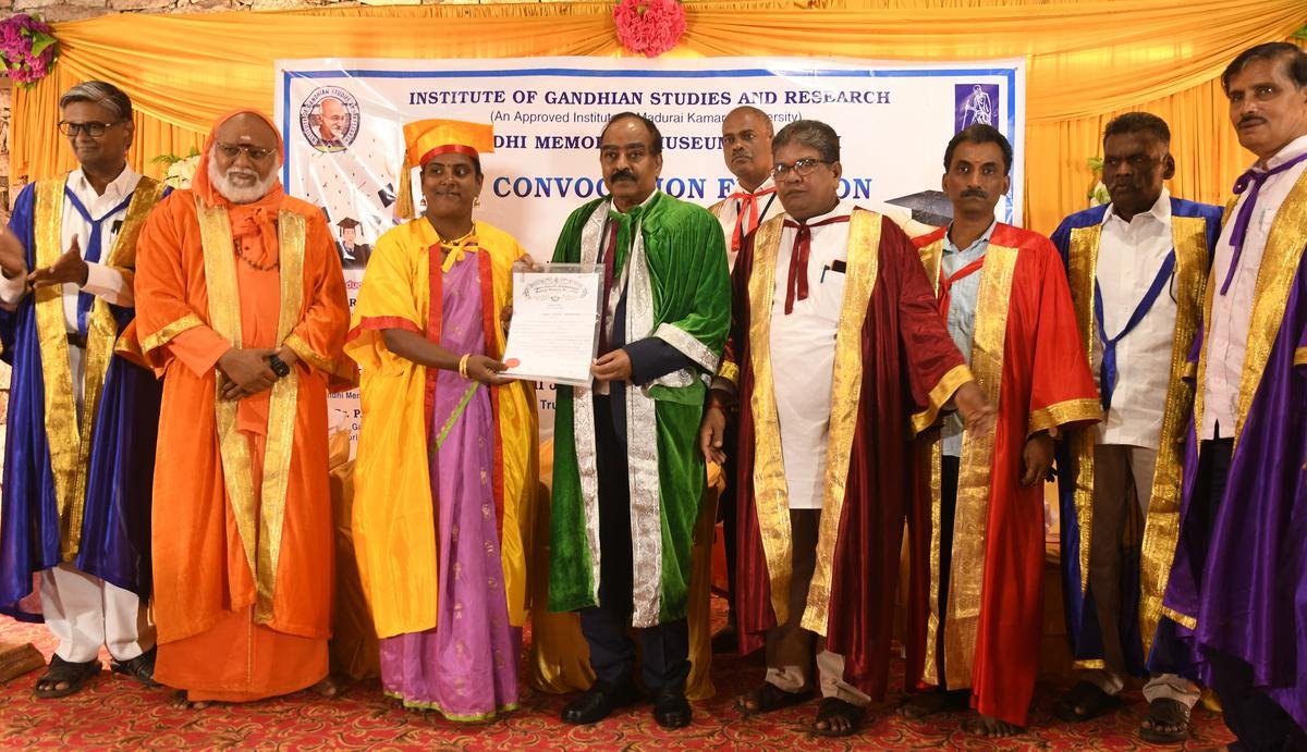 Students of Gandhi Institute of Studies and Research were awarded degrees at the 13th Gandhi Degree Conferment Ceremony.th The convocation ceremony was held at the Gandhi Memorial Museum in Madurai on Saturday.