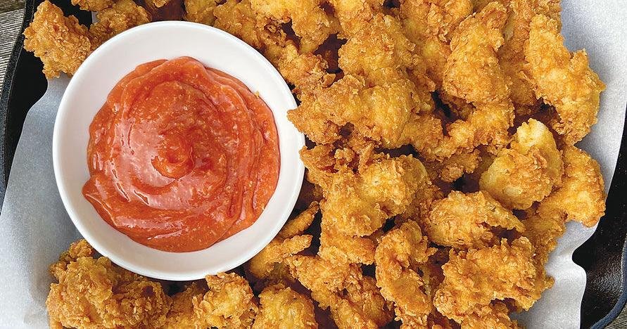 Deep fry until golden brown and serve with spicy cocktail sauce.