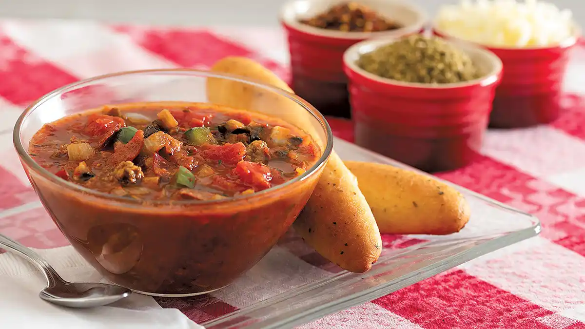Fresh from the Red Gold® Test Kitchen, our new Supreme Pizza Soup recipe is sure to be a sensation on your menu. To be shared with restaurateurs at upcoming trade events, the new soup harnesses the flavor of decadent pizza in the form of a hearty soup.