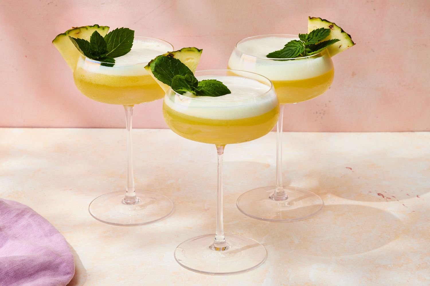 This sweet pineapple mocktail is refreshing and not too sweet. Fresh lime juice balances the tartness of the pineapple juice, while crushed mint adds a refreshing, bright herbal note.
