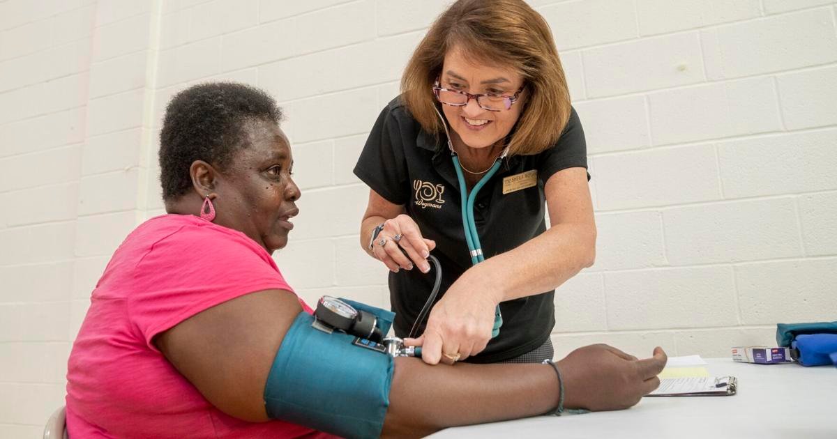 Wegmans pharmacist Sheila Novak takes Marine Softley’s blood pressure during the Independent Health Foundation’s free health and wellness event at Packard Court Community Center on Thursday, May 23, 2024.