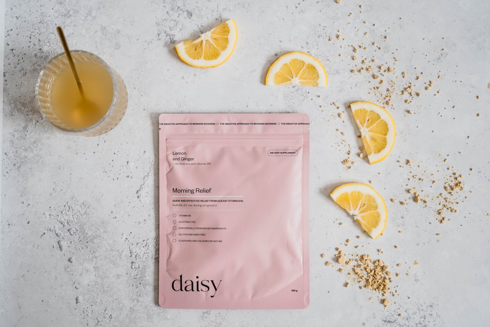 Daisy’s new drink, Morning Relief, aims to relieve both mild and severe morning sickness. The drink contains gingerol, Vitamin B6 and electrolytes, which are backed by scientific studies to relieve symptoms of morning sickness, nausea and dehydration during pregnancy. Vitamin B6 helps reduce nausea in pregnant women, while electrolytes are essential for managing hydration during vomiting, addressing maternal fluid depletion.
