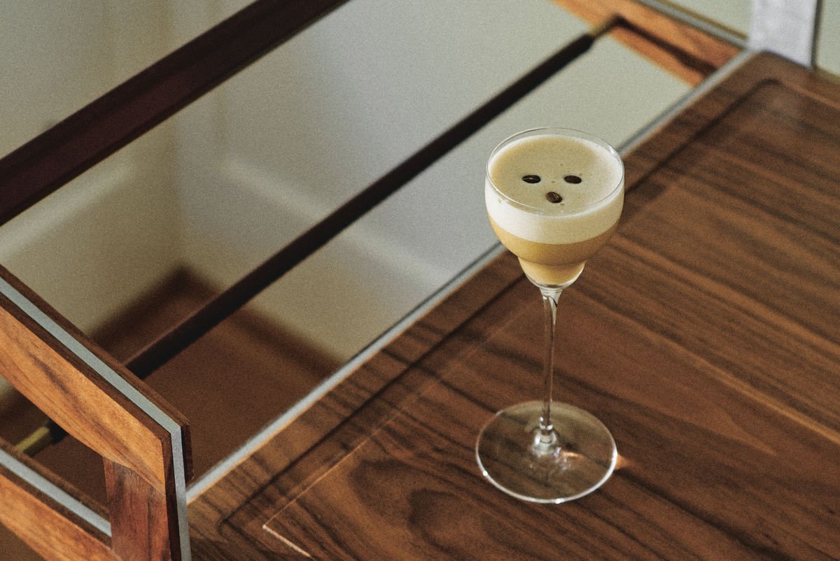 - Strain twice through a Hawthorne (a spring-bottomed paddle-shaped device that comes with cocktail shaker kits) and a fine strainer into a chilled coupe. Float 3 coffee beans in the center of the drink.