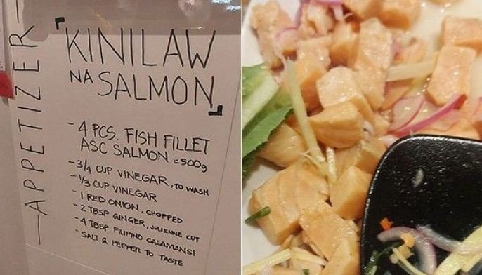 According to IKEA Philippines, simply mix all these ingredients (left) together to make kinilaw na salmon (right).