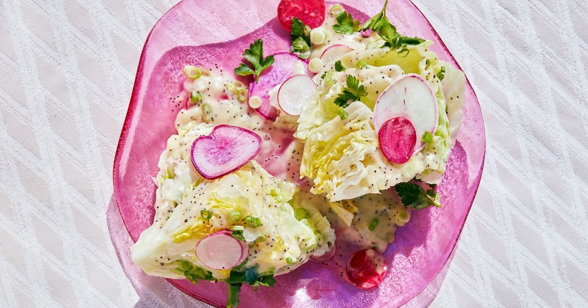 Step 3: Assemble the salad: Place iceberg wedges on a platter (or individually on plates). Spoon a generous amount of the dressing over the wedges. Scatter the radish, green onion, and parsley on top.