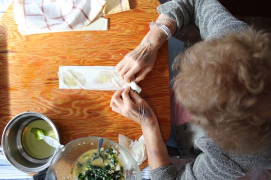 Efdocia anginus making spanokopita. Photo courtesy of Christos Sourligas