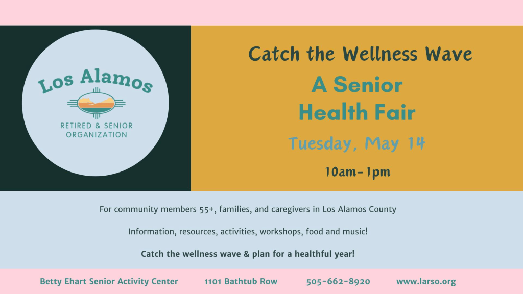 Los Alamos Retirement and Senior Citizens Organization (LARSO) will host a Senior Health Fair on Tuesday, May 14th from 10 a.m. to 1 p.m. at the Betty Ehart Senior Activities Center. The program is designed for community members age 55 and older, as well as family members and caregivers who support older adults in Los Alamos County.