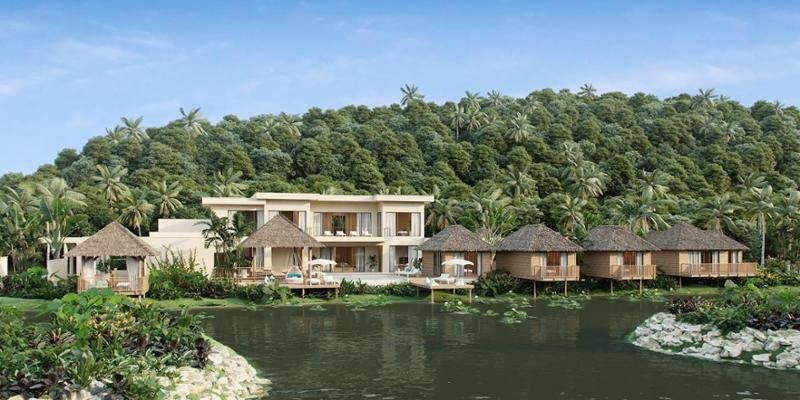 The resort features 56 pool suites and 15 villas, prioritizing design with guest health and the environment in mind.
