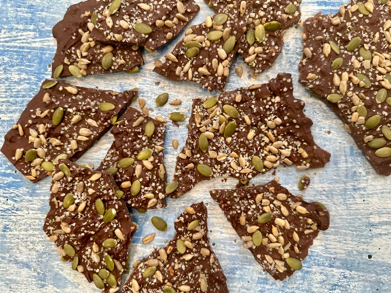 Chocolate lovers, get ready to embark on a delicious journey of sweet, salty, crunchy surprises. My Super Seed Bark is a great snack or dessert to enjoy whenever you feel like it. I love experimenting with different seed combinations, but I’m particularly focused on the nutrient-dense trio of sunflower, pumpkin, and hemp seeds, which are packed with plant-based protein, healthy fats, vitamins, and minerals. Masu. Adding hemp seeds not only increases the omega-3 fatty acids, but also adds an appealing touch of white, reminiscent of nonpareil or snowcap. In other words, before I became a nutritionist, I used to go to the movies a lot (lol).