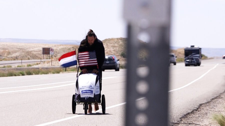 He is determined, cheerful and known simply as “The Barefoot Dutchman”. His goal is to break the Guinness World Record for walking a total of 3,100 miles barefoot from LA to Times Square.