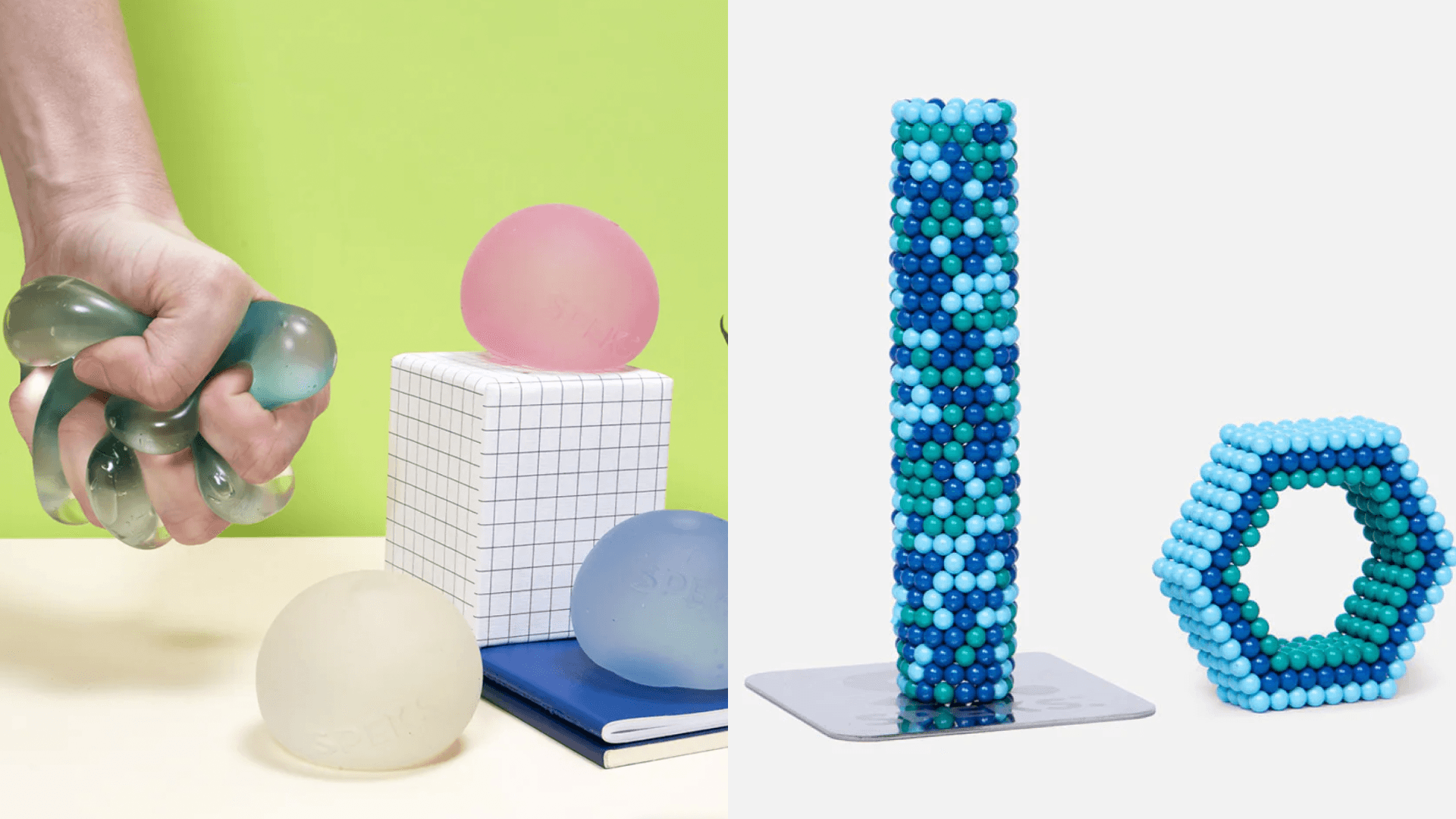Our editors have been playing around with, or “testing” Speks extensively for the past six months. So it’s safe to say that this brand is a clear winner for us. Their eponymous product is a smooth magnetic putty that you can build structures with or move between your fingers. Also, the company’s Gump is a fun stress ball/slime hybrid. We love these fidget toys for stressful work days, passive moments on the couch, or anxiety attacks.