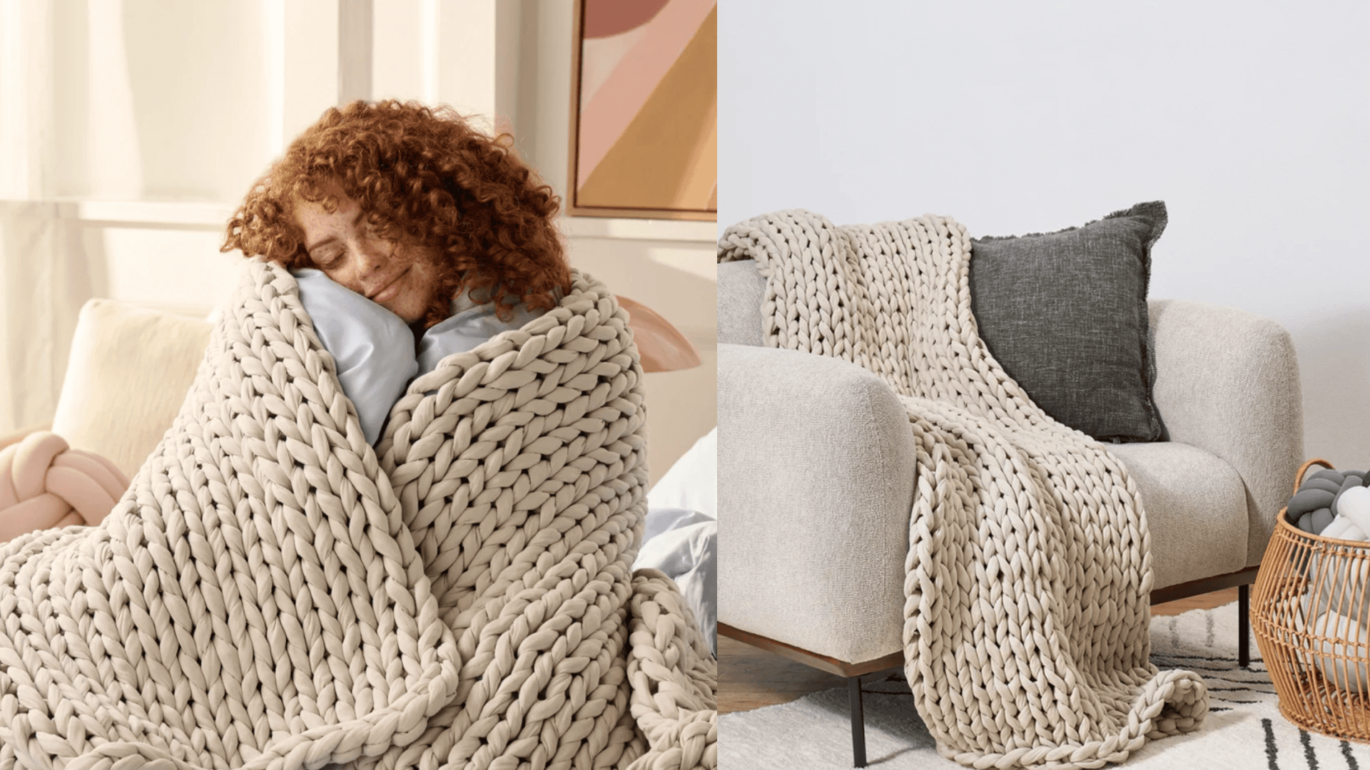 Bearaby’s best seller uses thick knit fabric made from 100% cotton to provide weight instead of the fillers and beads that come with typical weighted blankets. This small detail goes a long way in the cozy department, and its stress-relieving effect is real. Choose from a range of weights up to 20 lbs.