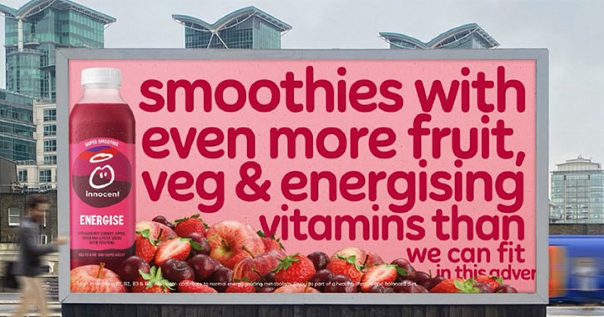 This campaign champions this product and relies on the power of fruits and vegetables. The World Health Organization recommends that he consume 400 grams of fruits and vegetables per day, but only 12% of Europeans consume the recommended amount per day. Innocent emphasizes the known health benefits by including images of juicy fruits and vegetables along with the cheeky copy.