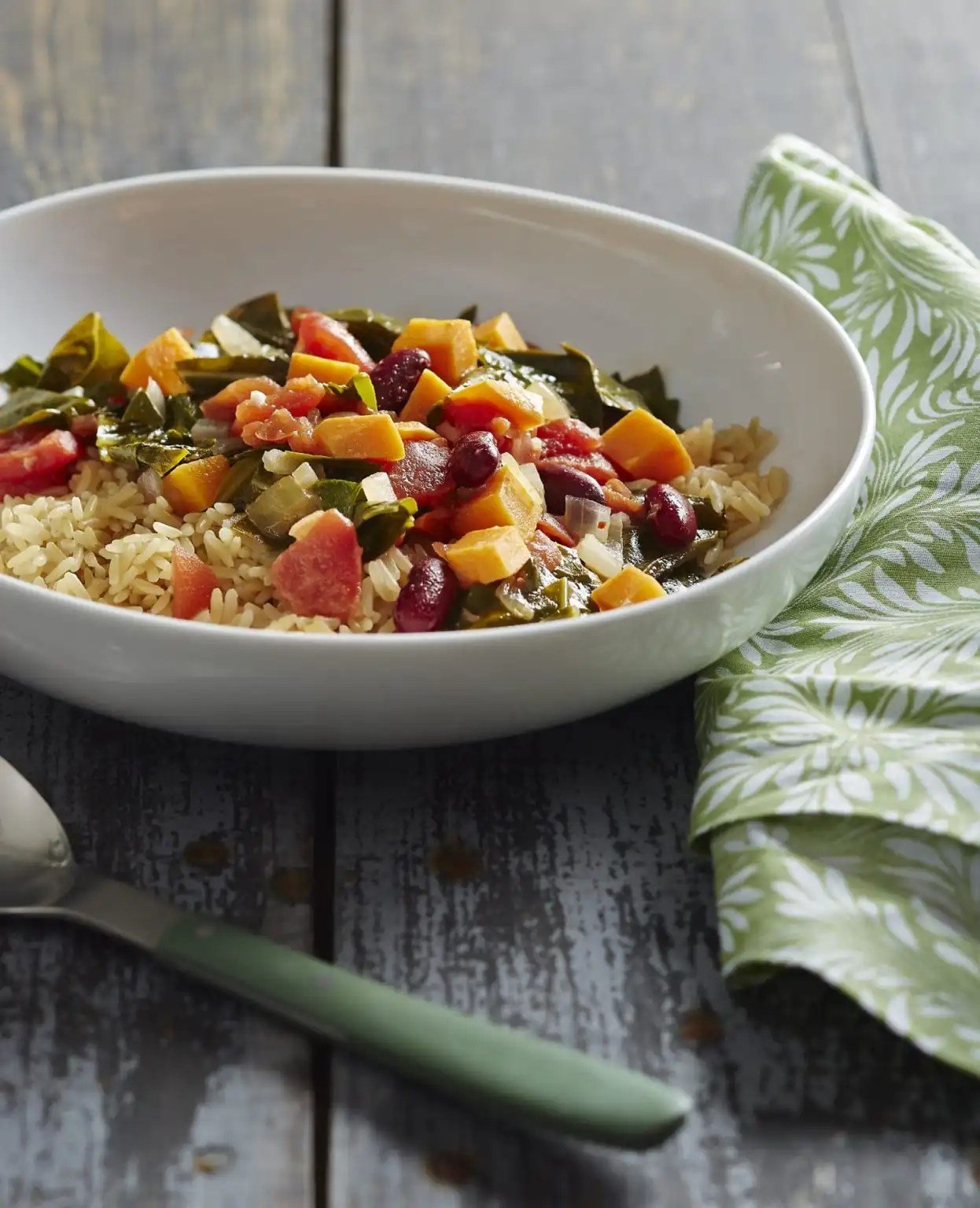 1. Caribbean Coconut Collards and Sweet Potatoes