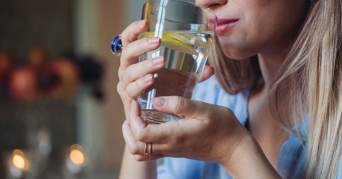 Woman drinking lemon water