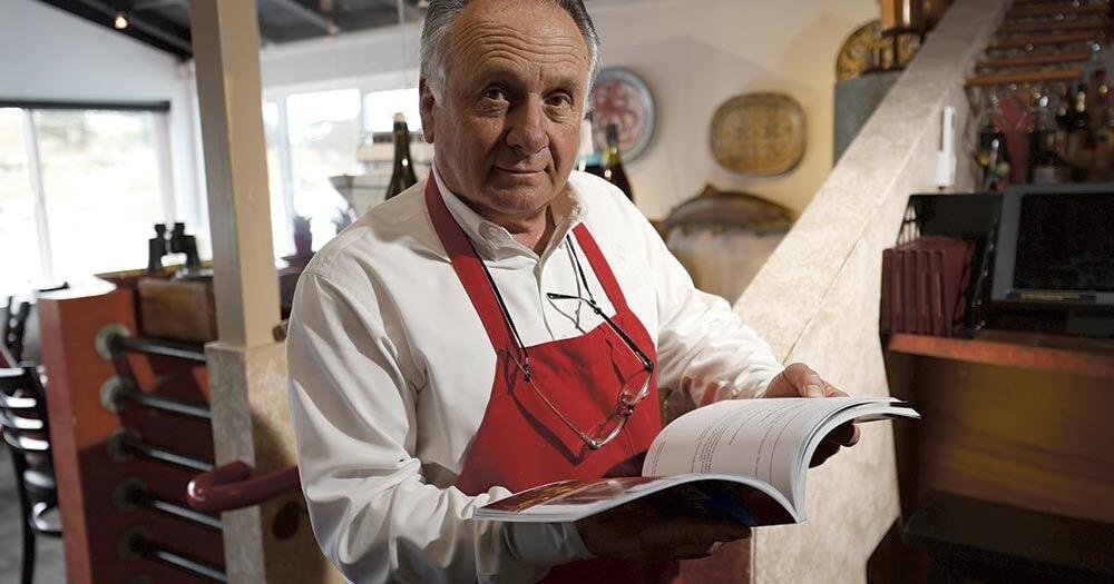 IT’S MERCURIO’S FIRST COOKBOOK. There are nostalgic images and stories, along with recipes familiar to Cafe Fina regulars. Yet he includes dishes from family and friends, such as a couple of contributions from famed Oakland Raiders head coach and later television broadcaster John Madden’s wife, Virginia Fields (“Her bread pudding is unbelievable,” Mercurio says).