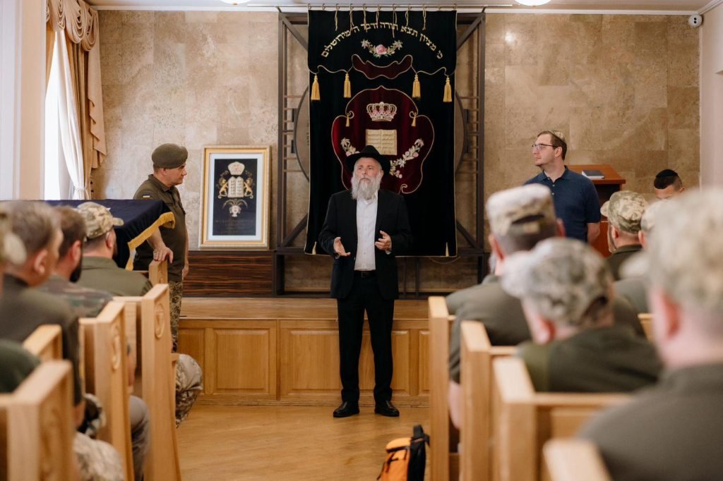Last week, a group of religious officers and senior officials of the Ukrainian Armed Forces visited the Jewish community in Kyiv, specifically the Beit Menachem JCC Community Center. During the visit, the officers met and conversed with Kyiv’s Chief Rabbi, Yonatan Markovich, and listened to lectures on various topics related to Judaism and military life.