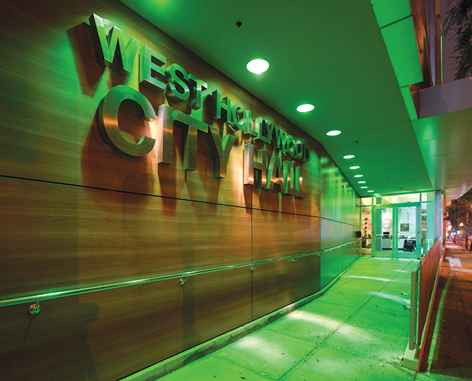West Hollywood City Hall will be lit green in honor of Mental Health Awareness Month. (Photo courtesy of John Biscot)