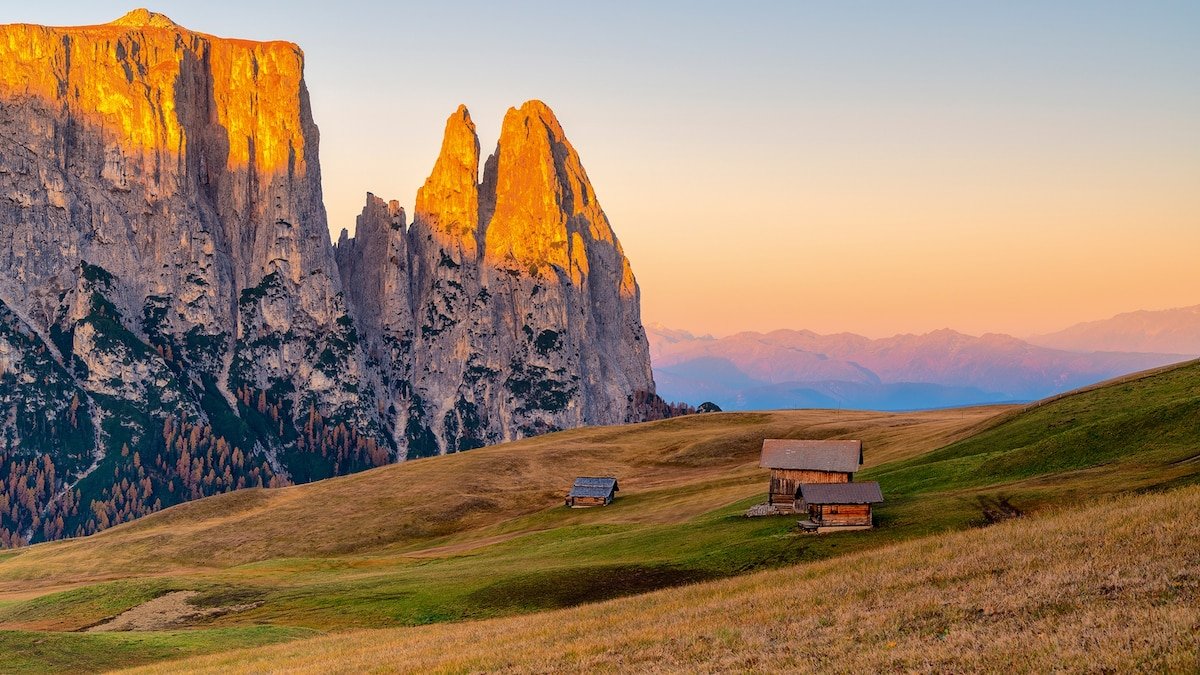 At 22 square miles, the Alpe di Siusi is the largest highland meadow in Europe, with views extending beyond the meadow for miles in every direction. Take a deep breath of clean air in time with your rhythmic steps. As we walk, Patrick points out the humps of Sasso Lungo (3,181 meters) and Sasso Piatto (2,955 meters), and we eventually reach a hill from which we can see the tip of Marmolada (3,343 meters) in the distance. With snow cascading behind limestone domes, this mountain is the highest peak in the Italian Alps, known as the “Queen of the Dolomites.”