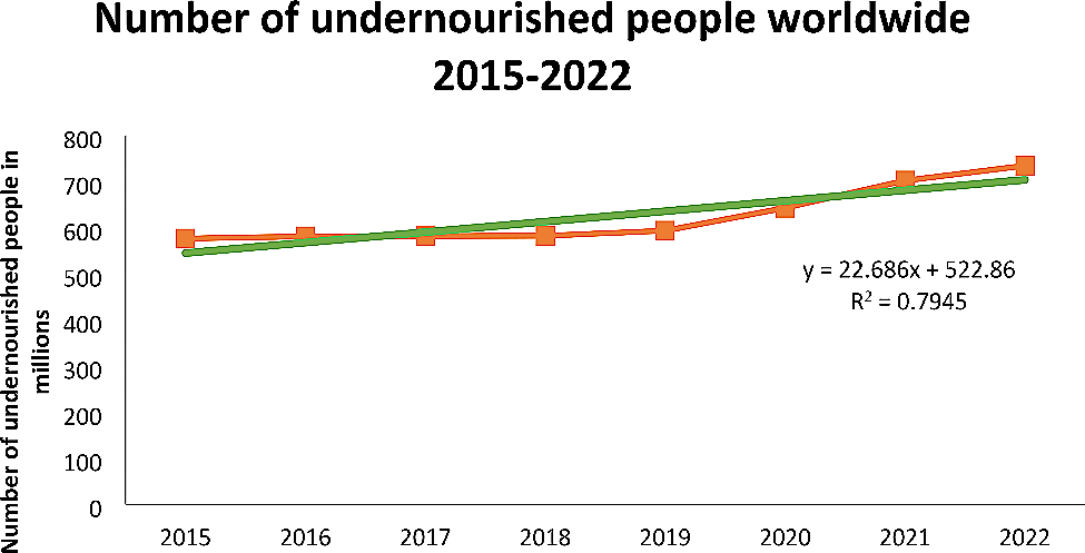 Our trend analysis shows that global hunger and undernourishment will increase over time from 2015 to 2022, contributing to tuberculosis (TB) incidence and the World Health Organization’s (WHO) end-TB goal. It has been shown to have a significant impact on achievement. According to the WHO, undernutrition has been identified as one of the most important factors for tuberculosis, accounting for an estimated 19% of tuberculosis cases worldwide in 2020. [15].Study reveals undernourished people are three times more likely to develop tuberculosis [16, 17]. Malnutrition can impair immune and vaccine responses to tuberculosis, leading to increased risk of infection, progression, and transmission. [18]. Additionally, nutritional deficiencies can worsen the severity of tuberculosis, leading to poor treatment outcomes, including increased mortality and recurrence rates. [19, 20].